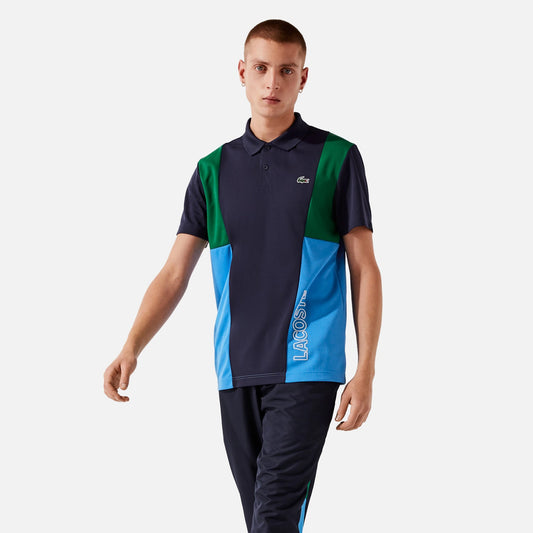 Men's Lacoste Sport Polo Shirt Blue Green Colourblock